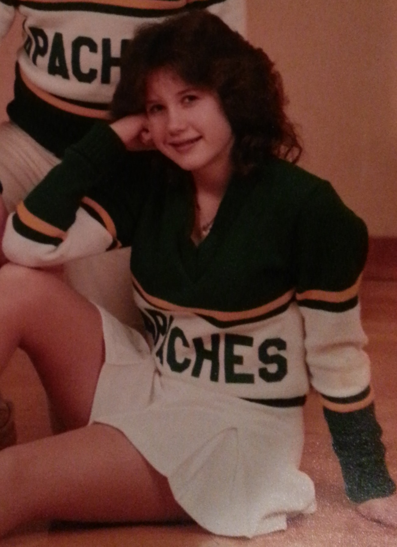 I found pictures of Tina and me in high school, underage Keystone Lights in our hands. Pictures of me from elementary school, where I would wear my hair in two long braids because it was grown out past my butt. It was the 70’s after all. Pictures of me in Junior High when I’d been on the cheerleading squad. I’d been very loud but not very coordinated, so the adviser had kindly created a new position – Spirit Leader. I got to be on the team and do the sideline cheers, I was even the one to start them off with the “Ready! Ooookay!” But during the elaborate half-time routines, I had to sit those out. But see, this was the role description of Spirit Leader, so I was totally fine with that.